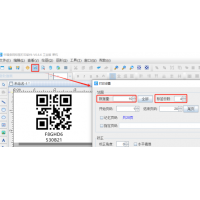 2. 制作示例二维码 点击软件左侧的“绘制二维码”按钮,在白色画布上绘制一个二维码, 双击绘制的二维码,在图形属性-数据源中,点击数据对象下面的“编辑”按钮,在打开的窗口中选择“打印时输入”数据类型,下面的打印时提示“请输入”不用做修改,点击下面的“编辑”按钮,在打开的窗口中,输入二维码的样本数据“F8GHD6530B21”,点击“确定”按钮,示例条形码制作完成。